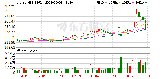 证券时报·数据宝统计显示,达梦数据今日收盘价为258.01元,上涨0.67%,日换手率为3.06%,成交额为5.70亿元,全天主力资金净流入1546.79万元,近5日该股累计下跌9.78%,近5日资金合计净流出527.52万元。