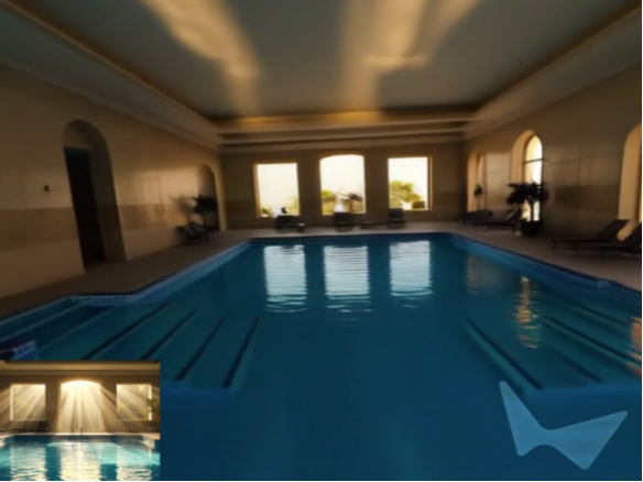 使用 RTFM 渲染的布满阳光的游泳池场景