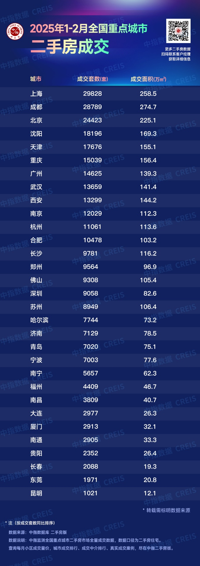 根据中国房地产指数系统百城价格指数,2025年2月,百城二手住宅均价环比下跌0.42%,跌幅收窄0.1个百分点,同比下跌7.26%;十大城市二手住宅均价环比下跌0.25%,同比下跌6.32%。