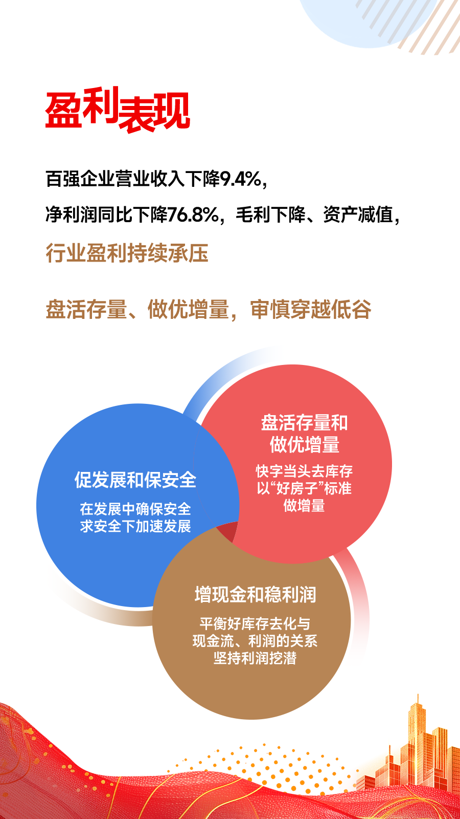 房地产行业正步入新的发展阶段,中央政治局会议明确房地产“止跌回稳”目标,中长期住房需求仍有较大市场,房企在增量市场特别是存量市场都可以大有作为。在增量市场中,百强企业顺应需求变化,建设安全、舒适、绿色、智慧的“好房子”。在巨大的存量市场中,百强企业提供良好的运营和优质的服务。可以看到,今天到场的企业中,不仅有优秀的房地产开发企业,也有优秀的运营服务企业,包括代建、园区运营、商业运营、租赁、策划代理和金融服务企业。这充分证明房企均在适应新的市场变化,在创新转型中涌现出了一批优秀的开发、建设、服务、运营企业。