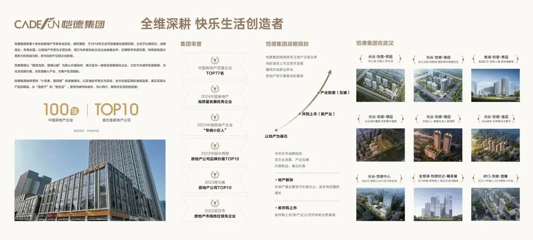 2020年:深耕光谷,获取光谷核心的优质地块——即恺德光谷熙园、恺德·瑜园项目;同时打造了走出光谷的第一个项目——恺德·熹园,正式进军康养产业,朝着多元化产业布局迈进;