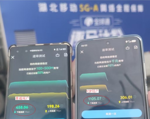 湖北移动在起终点及沿线共694个小区部署3CC功能,实现5G-A网络全程覆盖,实测下行测速相比普通5G体验提升10倍。同时,针对湖北移动5G-A套餐用户、全球通钻卡用户和本次汉马参赛选手,在进入5G-A网络保障范围时,可获得更高优先级上网服务,能够在手机上运营商标识处显示“中国移动汉马VIP”专属Logo,让湖北移动用户提前感受5G-A网络的独特魅力。