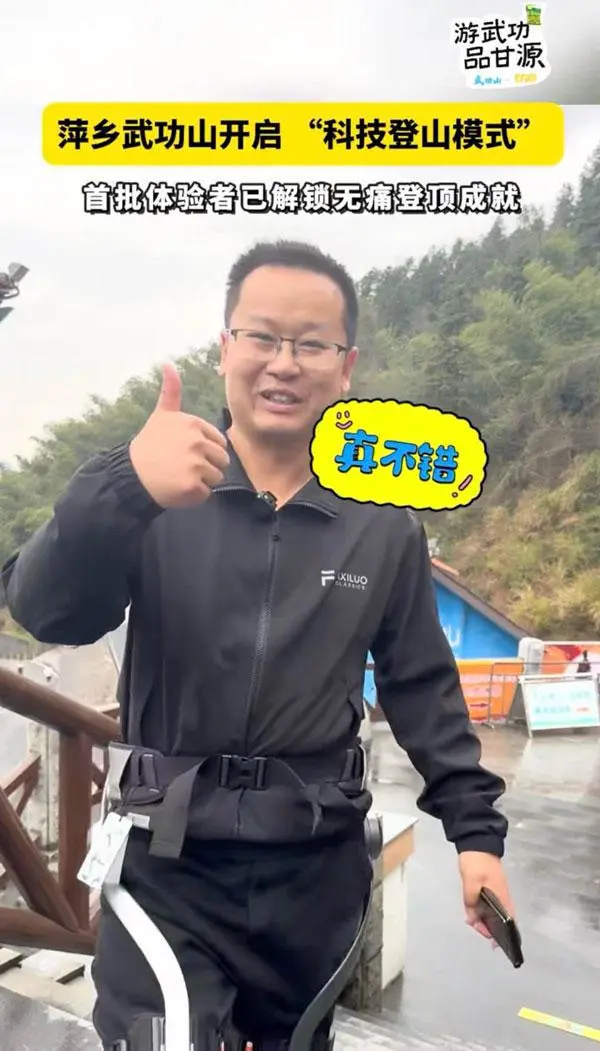 据萍乡武功山景区介绍,武功山的主峰白鹤峰(金顶)海拔高度达到1918.3米,对于很多普通游客而言,徒步登顶极具挑战性,而在外骨骼机器人的助力下,可以让更多的游客体验到“征服”武功山的成就感。