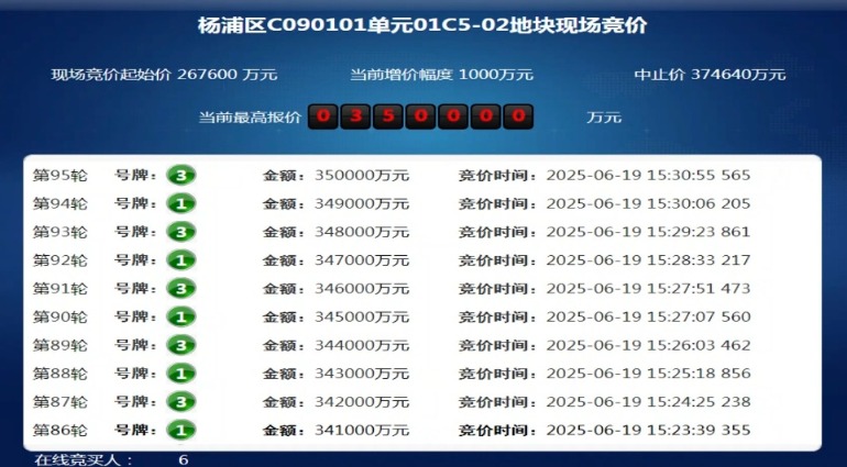 (上海市杨浦区东外滩地块现场竞价情况。图片来源:上海土地交易市场)