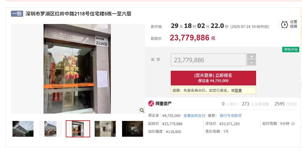 溢价率曾高达379.6%!深圳这栋法拍房再次上架