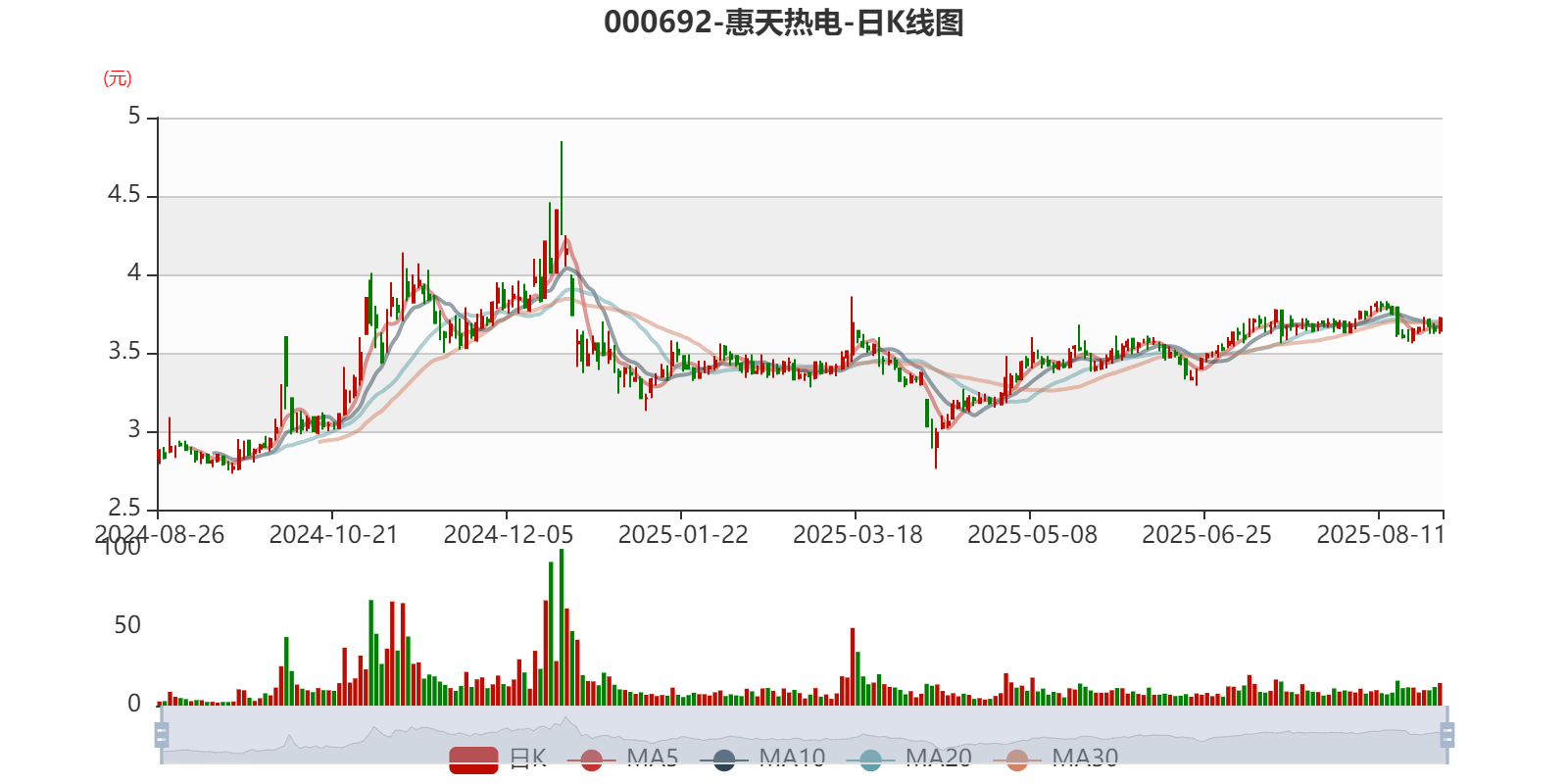 值得注意的是,中登公司数据显示,截至2025年8月22日,惠天热电27.22%股份处于质押状态。半年报显示,第一大股东沈阳润电热力有限公司质押1.45亿股公司股份,占其全部持股的90.77%。