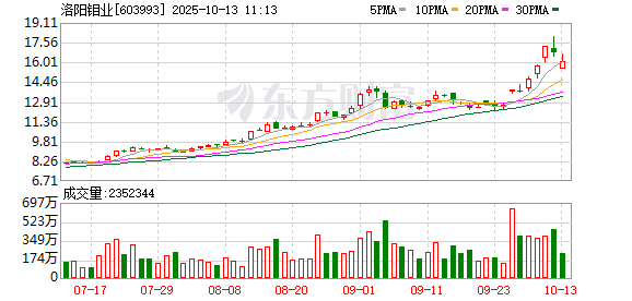 比如,10月9日至10日这两个交易日,铜价便经历了大起大落,伦敦期铜一度站上11000美元/吨,但却在10月10日大跌4.54%,报收10374美元/吨,紫金矿业、洛阳钼业等龙头个股均在10月10日发生一定回调。