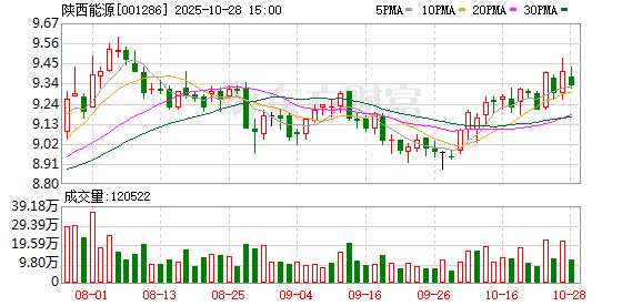 同日晚间,陕西能源还发布2025年三季报,2025年第三季度实现营业收入64.97亿元,同比增长3.78%;归母净利润为10.83亿元,同比增长13.24%;基本每股收益为0.29元/股,同比增长11.54%。
