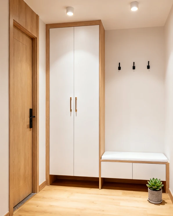 家庭装修的核心原则的是先满足实用功能,再追求舒适体验,最后兼顾美观效果,三者并非对立关系,完全可以兼顾统一,切忌为了追求表面好看,舍弃最基础的使用需求。玄关作为室内外的过渡区域,核心功能就是日常换鞋,以及收纳出门必备的钥匙、包包、雨伞等物品,而鞋柜正是承载这些需求的核心载体。缺少鞋柜的玄关,很容易陷入物品杂乱无章的困境,严重影响居住体验。