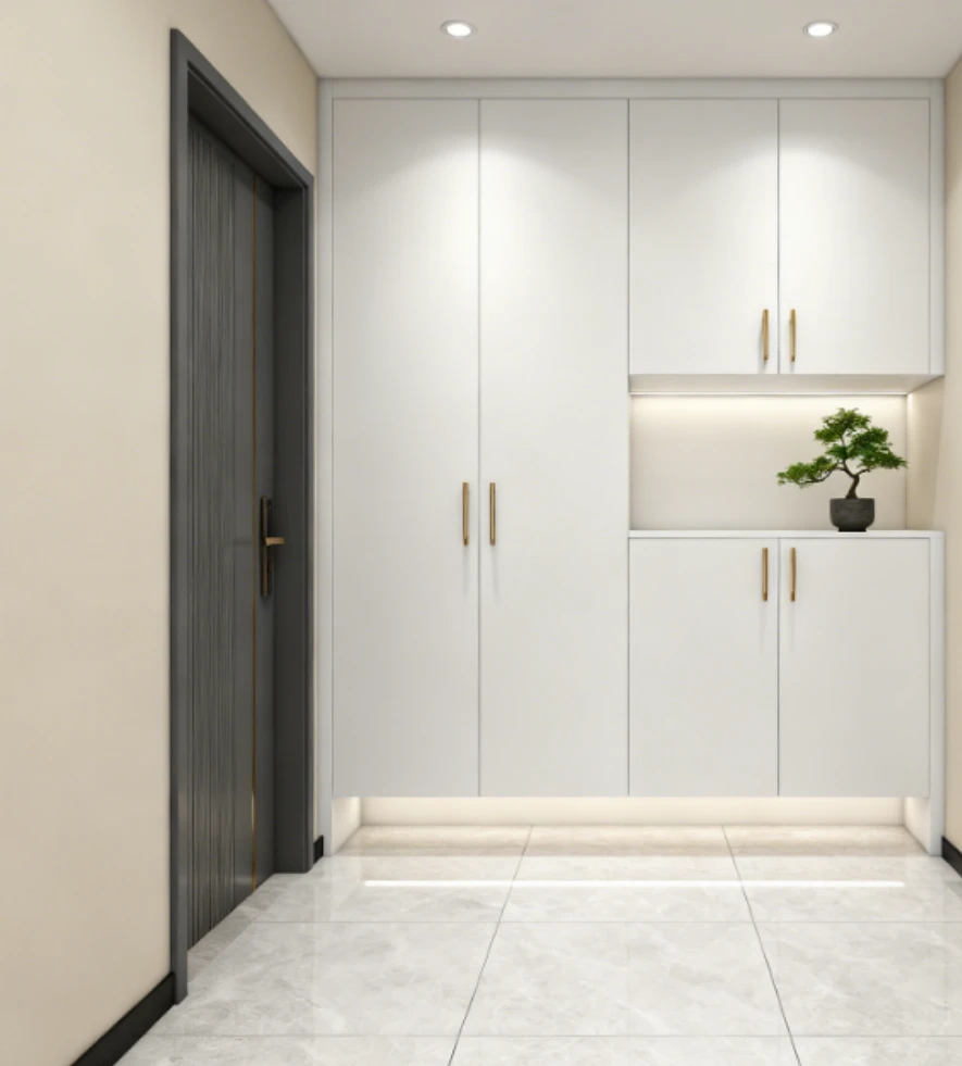 其实打造美观又好用的玄关鞋柜,关键在于找对方法,既能提升颜值,又不耽误使用。若想让室内格局更通透开阔,可选择贴墙定制入墙式鞋柜,搭配与墙面协调的配色,能有效弱化柜体存在感,整体风格简洁又大气。若担心入户缺乏隐私性,不妨用定制鞋柜充当隔断,既能优化玄关布局,又能腾出充足收纳空间,实现一物两用。想要增添格调的话,可在鞋柜旁或柜体本身设计端景区域,搭配简约摆件、个性装饰画,轻松打造独特质感。另外,灯光也是提升氛围感的关键,隐形暖光灯带、艺术射灯等,都能为玄关和鞋柜加分不少。