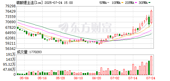 现货方面,上海钢联最新数据显示,7月24日,电池级碳酸锂均价已回升至7.015万元/吨,较月初上涨14.9%。